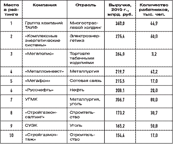 ТАБЛИЦА 2. ТОП‑10 РОССИЙСКИХ НЕПУБЛИЧНЫХ КОМПАНИЙ, 2011 Г.