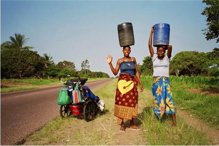 Шагая по провинции Инхамбан под кокосовыми пальмами, пробираясь вдоль диких пляжей, я улыбаюсь, встречая молодых людей, прямо на обочинах торгующих всевозможными ягодами в огромных плошках и мисках. В одном из таких мест чуть поодаль примечаю, как рыболовецкие шлюпки с треугольным парусом возвращаются к родным причалам. К ним сразу же бегут женщины и дети, чтобы отнести на берег сегодняшний улов. Причалив в этих краях по пути в Индию, великий Васко да Гама был настолько очарован здешними обитателями, что назвал эти места Страной Добрых Людей. Разглядывая детишек, веселящихся вокруг моей знаменитой колясочки, я замечаю, что им очень подходит это имя… Вот уже много месяцев, проведенных в Африке, я играю с местными детьми, и мне очень нравится, как они себя ведут, – их радостные возгласы наполняют душу счастьем. Куда бы я ни прибыл, едва стоит заговорить о моей кругосветке, вокруг слышатся возгласы: «Ого! Ничего себе, как далеко ты забрался!» Те, кто говорит по‑французски, округлив глаза, произносят коронное «О‑ла‑ла!», делая ударение на длинном звуке «а». Зулусы, в свою очередь, издают сиплый клич «р‑р‑р‑рооооо йохххо‑о‑о‑о‑о», мощный и гортанный. Кабилы[44]звонко прищелкивают языком, а вот жители Мозамбика… У этой народности, пожалуй, самый оригинальный способ выражения восхищения: они издают очень высокий звук и многократно его повторяют – «хееее, хеееее, хииии!», чем‑то напоминающий то ли свист, то ли крик кенара[45]. Я просто теряюсь в догадках, размышляя об этих людях… Они умеют беседовать с землей: уверяют, что им знаком звук ее смеха. И ее песня тоже. Однажды вечером до меня вдруг доносится чарующая мелодия. Я вижу незнакомца, сидящего на обочине дороги. В руках у него странный музыкальный инструмент: пять струн закреплены на основе, сделанной из обрывка древесной коры и плоской жестянки вроде тех, в которые разливают здесь кленовый сироп. Этот самодельный бендир [46] звучит божественно. Музыкант наигрывает нежную мелодию, звуки которой пронизывают меня всего и исчезают в вечности, смешиваясь с придорожной пылью.
