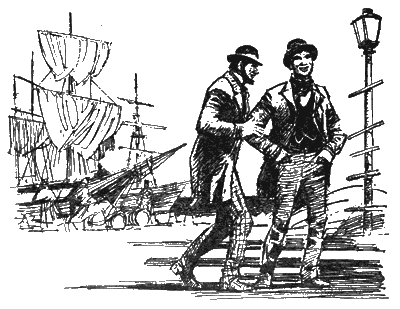 – Так, значит, вы сильно спешили? – спросил полицейский инспектор. – Я‑то нет. Это всё мой господин. Кстати, мне нужно ещё купить сорочки и носки! Ведь мы выехали без вещей, с одним лишь ручным саквояжем. – Я могу вас проводить на базар, где вы найдёте всё, что нужно. – Право, вы очень любезны, сударь, – ответил Паспарту. Оба отправились в путь. Паспарту продолжал болтать. – Только бы мне не опоздать на пароход! – беспокоился он. – У вас ещё много времени, – ответил Фикс, – сейчас только полдень. Паспарту извлёк свои громадные часы. – Как полдень! – воскликнул он. – Сейчас только девять часов пятьдесят две минуты! – Ваши часы отстают, – заметил Фикс.