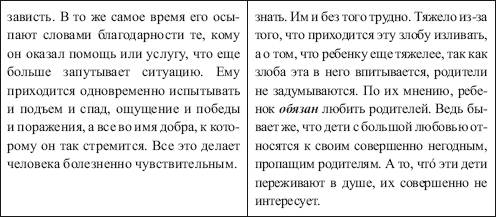 Человек, испытывающий комплекс неполноценности и желающий людям добра, сам, без чьих‑либо обвинений, считает себя виноватым во всем, а потому жертвует собой, чтобы людям жилось лучше. Например, бросает любимую работу. Теперь все должны быть довольны, так нет же. Недовольны в том числе и те, кто нуждался в его помощи, те, за кого ему прежде приходилось чувствовать, думать, говорить, делать, кому от этого жилось легче. Так человеку в состоянии депрессии приходит в голову – неизвестно откуда – мысль: без меня всем будет лучше. Нетрудно эту мысль реализовать и стать самоубийцей. Если нет надежды, если все кажется бессмысленным, так и случается. Если чаша терпения наполнена еще не до самого края, если человек еще не впал в полную апатию, зародившейся мыслью о самоубийстве он начинает шантажировать ближних. Угроза самоубийства– вернейшее средство шантажа тех, кто тебя очень любит. И человек, горячо любящий родителей, принимается их шантажировать при том, что и они любят его очень сильно. Видите, сколь опасна большая любовь, которая и не любовь вовсе. Большая любовь – любовь собственническая. Это зло, хотя никто не желает этого признавать.