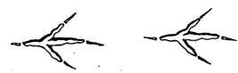 Следы птиц дают массу информации для внимательного наблюдателя. Например, на земле оставлены следы вроде этих: Ты согласен, что это следы прыгающей птицы? А то, что птица передвигается прыжками, говорит Тебе о том, что она не ищет пищи на земле. Вероятно, она ищет пропитание в воздухе или питается жучками и ягодами на кустах и деревьях.