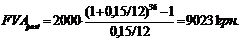 Приклад 2. Щомісяця частина заробітної плати фізичної особи в сумі 2000 грн. перераховується на депозитний накопичувальний рахунок. Розрахувати дохід вкладника через 3 роки від розміщення коштів на накопичувальному рахунку під 15% річних з щомісячним нарахуванням складних відсотків. Застосувати методи пренумерандо і постнумерандо. Розв’язання: Дохід вкладника, розрахований за методом пренумерандо:
