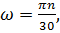 Угловая скорость вращения коленчатого вала ώ, с-1, находится по формуле