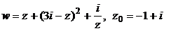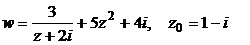 Задача 7. Дана функция комплексной переменной (ФКП) w = f (z), где z = x + iy, и точка z 0. Требуется: 1) представить ФКП в виде w = u (x, y) + iv (x, y), выделив ее действительную и мнимую части; 2) проверить, является ли функция w аналитической; 3) в случае аналитичности функции w найти ее производную w ′ в точке z 0.