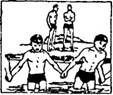 купания должна быть определена степень умения плавать каждого разведчика и разведчицы. Разведчиков и разведчиц делят на три группы: на тех, которые учатся плавать; на начинающих, самостоятельно проплывших 15 метров; на умеющих плавать, проплывших 100 метров, из них 25 метров на спине, и умеющих держаться на воде «поплавком». Каждая группа должна находиться во время купания в предназначенном для нее месте. 1) Дружеская порука. Все купающиеся разбиваются на пары, члены которых относятся к одной из вышеперечисленных групп. Пара друзей не должна удаляться дальше 3-х метров один от другого, кроме того, они должны все время проверять друг друга. Когда наблюдатель выкликает: «Где твой друг?»—друзья хватаются за руки и поднимают их в воздух. Таким образом наблюдатель может проверить, сколько групп находится в воде в данный момент.