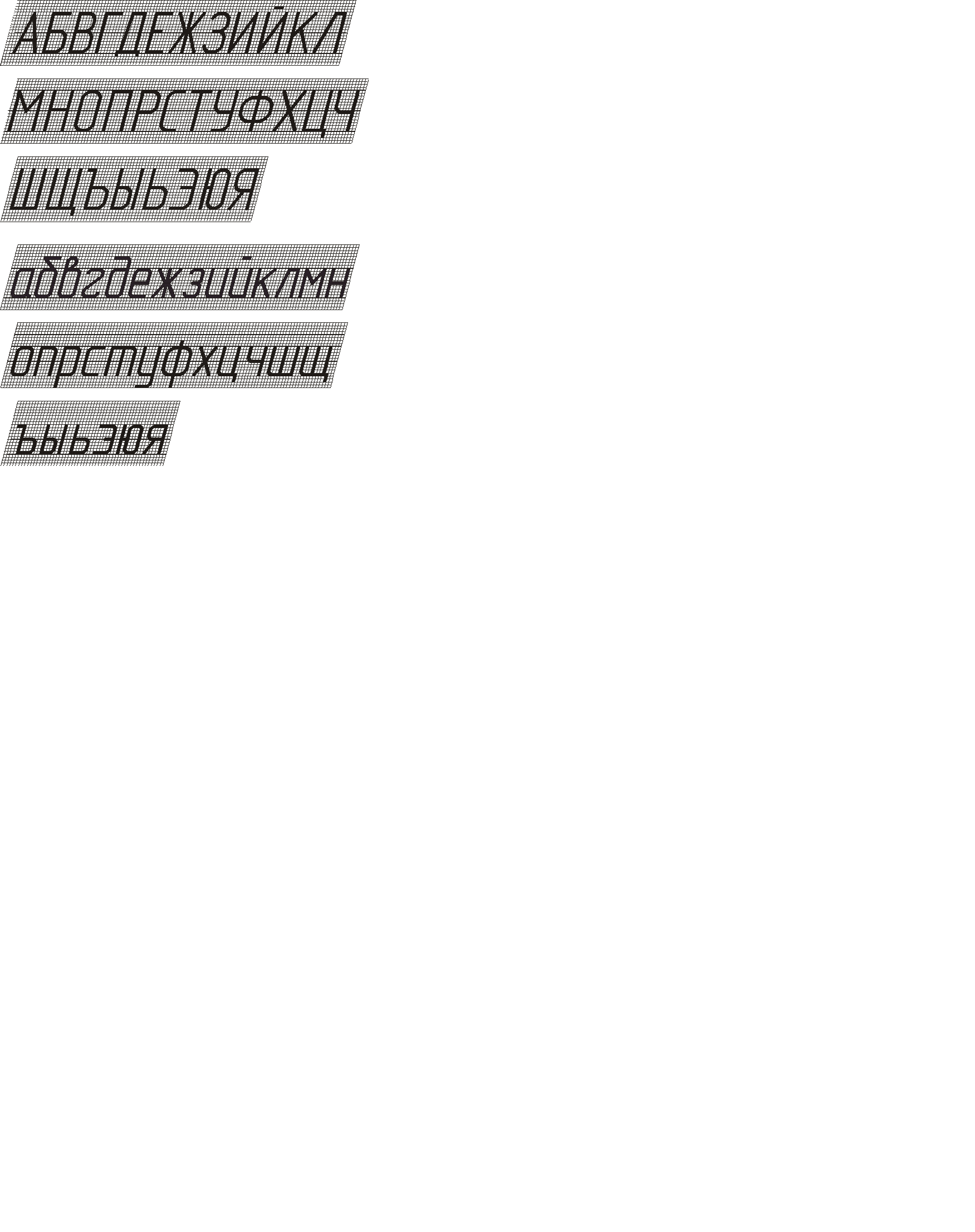 Примечания: 1 Расстояние a между буквами, соседние линии которых не параллельны между собой (например, ГА, АТ), может быть уменьшено наполовину, т.е. на толщину d линии шрифта. 2 Минимальным расстоянием между словами е, разделенными знаками препинания, является расстояние между знаком препинания и следующим за ним словом. 3 Устанавливаются следующие размеры шрифта: 2,5; 3,5; 5; 7; 10; 14; 20; 28; 40. 4 Предельные отклонения размеров букв и цифр +0,5 мм. Начертание букв и символов приведены на рисунках 3, 4, 5, 6, 7. РУССКИЙ АЛФАВИТ (КИРИЛЛИЦА)