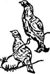 Глухарь. Самый крупный представитель боровой дичи, поистине лесной великан - вес самца достигает 6, 5 кг. Самцы темно-серые, почти черные, с зеленоватым зобом, а самки -светло-бурые. Место глухариного токования сохраняется десятилетиями. В марте-апреле самцы, прилетев на ток, распустив крылья по уплотненному снегу, прочерчивают две параллельные полосы. С этой церемонии начинается токование. Каждый самец еще до восхода солнца распускает хвост, вытягивает шею и заводит брачную песню, состоящую из щелкания и шипения, называемого в народе "трение". Время от времени петухи (так называют самцов глухаря) слетают на землю и дерутся между собой. Питается глухарь сосновой хвоей, почками, веточками, ягодами и насекомыми.