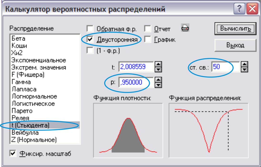 определяем Fкр = F(0,95; 2; 52-2-1)=F(0,95; 2; 49)=3,186582, определяем tкр=t(0,95; 52 – 2 – 1)=t(0,95; 49)=2,00957.