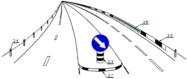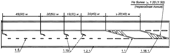 Рисунок В.15 - Пример нанесения разметки на участке съезда с автомагистрали