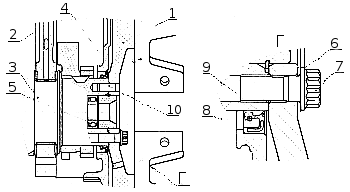 Установка маховика и манжеты уплотнения коленчатого вала: 1 — маховик; 2 — блок цилиндров; 3 — коленчатый вал; 4 — картер маховика; 5 — подшипник первичного вала коробки передач; 6 — шайба; 7 — болт крепления маховика; 8 — манжета уплотнения коленчатого вала; 9 — пыльник манжеты; 10 — штифт установочный маховика. С целью исключения повреждения поверхности маховика под головки болтов устанавливается шайба 6 (Рис. Установка маховика и манжеты уплотнения коленчатого вала). Величина моментов затяжки болтов крепления маховика указана в приложении 8. На обработанную цилиндрическую поверхность маховика напрессован зубчатый венец 2, с которым входит в зацепление шестерня стартер при пуске двигателя (см. рис. Маховик). При выполнении регулировочных работ по установке угла опережения впрыска топлива и величин тепловых зазоров в клапанах маховик фиксируется при помощи фиксатора (Рис. Положения ручки фиксатора маховика).