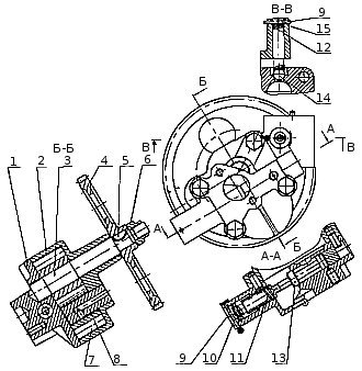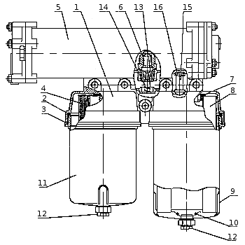 · Масляный насос (см. рис.) закреплен на нижней плоскости блока цилиндров. Ведущее зубчатое колесо напрессовано на передний конец коленчатого вала и имеет 64 зуба, ведомое 52, то есть передаточное отношение 0,8125. Зазор в зацеплении приводных зубчатых колес регулируется прокладками, устанавливаемыми между привалочными плоскостями насоса и блока, который должен быть 0,15-0,35 мм, момент затяжки болтов крепления масляного насоса к блоку должен быть 49-68,6 Н.м (5-7 кгс.м). · · Насос масляный: 1 — крышка; 2 — корпус; 3 — шестерня ведущая; 4 — ведомое зубчатое колесо; 5 — шпонка; 6 — гайка; 7 — зубчатое колесо; 8 — ось; 9 — шплинт; 10 — пробка; 11, 12 — пружины; 13 — клапан; 14 — шарик; 15 — шайбы регулировочная. · Масляный насос шестеренчатый, односекционный. Содержит корпус 2, крышку 1 и шестерни. В крышке расположен клапан смазочной системы 13, с пружиной 11. В нагнетающем канале установлен предохранительный клапан, состоящий из шарика, пружины и регулировочных шайб. · Масляный фильтр (см. рис.) закреплен на правой стороне блока цилиндров и состоит из корпуса 1, двух колпаков 9 и 11, в которых установлены полнопоточный 8 и частично-поточный 4 фильтроэлементы. · · Фильтр масляный с теплообменником: 1 — корпус фильтра; 2, 3 — уплотнительные кольца; 4 — частично-поточный фильтрующий элемент; 5 — теплообменник; 6 — термосиловой датчик; 7 — прокладка; 8 — полнопоточный фильтрующий элемент; 9, 11 — колпаки; 12 — сливная пробка; 13 — поршень термоклапана; 14 — пружина термоклапана; 15 — перепускной клапан; 16 — пружина перепускного клапана. · Колпаки на резьбе вворачиваются в корпус. Уплотнение колпаков в корпусе осуществляются кольцами 2 и 3. · В корпусе фильтра также расположен перепускной клапан 15 и термоклапан включения водомасляного теплообменника. Очистка масла в фильтре комбинированная. Через полнопоточный фильтроэлемент 8 проходит основной поток масла перед поступлением к потребителям, тонкость очистки масла от примесей при этом составляет 40 мкм. Через частично - поточный фильтроэлемент 4 проходит 3-5 л/мин, где удаляются примеси размерами более 5 мкм. Из частично-поточного элемента масло сливается в картер. · При такой схеме достигается высокая степень очистки масла от примесей. · Система вентиляции картера (см. рис.) открытая, циклонного типа. Картерные отводятся из штанговой полости второго цилиндра, через угольник 1, в котором установлен завихритель 2. · При работе двигателя картерные газы, проходя через завихритель 2, поучают винтовое движение. За счет действия центробежных сил капли масла, содержась в газах, отбрасываются к стенке трубы 4 и через трубку 6 сливаются обратно в картер. Очищенные картерные газы удаляются в атмосферу. · · Система вентиляции картера двигателя: 1 — угольник; 2 — завихритель; 3 — уплотнительное кольцо; 4 — труба: 5 — втулка внутренняя; 6 — труба слива масла; 7 — маслоотделитель; 8 — шланг угловой; 9,10 — хомуты; 11 — трубка отвода газов; 12 — дроссель; 13 — кляммер. · ---► -моторное масло · Система охлаждения двигателя КамАЗ жидкостная, закрытого типа, с принудительной циркуляцией охлаждающей жидкости. Основными элементами системы (рис. Схема системы охлаждения) являются водяной насос 8, вентилятор 10, гидромуфта привода вентилятора, термостаты 22, включатель 15 гидромуфты, радиатор, кожух вентилятора, водяные трубы, жалюзи радиатора и расширительный бачок 20 