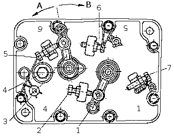 Крышка регулятора ТНВД: 1 — рычаг управления регулятором; 2 — болт ограничения минимальной частоты вращения; 3 — рычаг останова двигателя: 4 — пробка заливного отверстия; 5 — болт регулировки пусковой подачи; 6 — болт ограничения хода рычага останова; 7 — болт ограничения максимальной частоты вращения; А — работа; В — включено. При снятии усилия с рычага останова двигателя он под действием пружины 25 (рис. ТНВД) возвратиться в рабочее положение. Автоматическая муфта опережения впрыскивания топлива мод. 333 для двигателя 740. 11-240 и мод. 333-60 для двигателя 740. 14-300 (рис. Автоматическая муфта опережения впрыскивания топлива) изменяет начало подачи топлива в зависимости от частоты вращения коленчатого вала двигателя. Муфта устанавливает оптимальное для рабочего процесса начало подачи топлива во всем диапазоне скоростных режимов. Этим обеспечивается допустимый уровень выбросов вредных веществ с отработавшими газами, приемлемые экономичность и жесткость процесса при различных скоростных режимах работы двигателя.