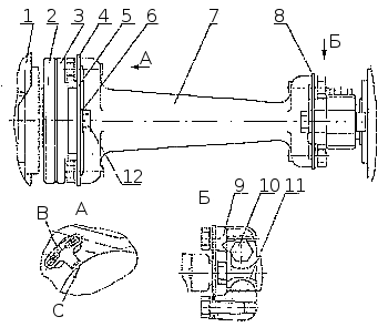 Установка угла опережения впрыска топлива двигателей 740.13-260 без муфты опережения впрыскивания топлива: 1 — корпус ТНВД; 2 — полумуфта ведомая; 3 — фланец ведомой полумуфты; 4, 8 — набор пластин; 5 — фланец центрирующий; 6 — втулка центрирующая; 7 — вал привода; 9 — полумуфта ведущая; 10 — стяжной болт; 1 — шпонка; 12 — болт ведомой полумуфты.
