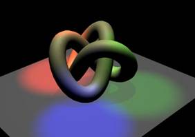 Рис. 32. Вид сцены с тремя прожекторами Рис. 33. Результат снижения плотности теней