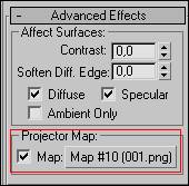 И напоследок попробуем воспользоваться интересной возможностью назначения прожектору текстурной карты Projector Map (Проецируемая карта), что позволяет либо совмещать отображение светового пятна с изображением произвольного изображения (если задействована, например, обычная фотография), либо видоизменять определенным образом границу светового пятна (если использовано черно-белое изображение, играющее роль маски). Мы применим второй вариант и назначим прожекторам текстуры, показанные на рис. 34, 35 и 36 соответственно, — сделать это нужно в свитке Advanced Effects (рис. 37). Возможный результат назначения текстурных карт показан на рис. 38, для достижения которого торусу дополнительно был присвоен новый материал, имитирующий пластик.