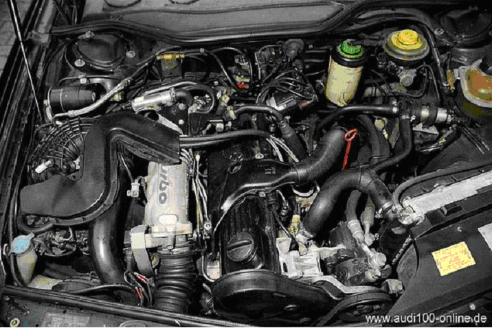Код двигателя: MC Выпускался с - по: 01.85 - 11.90 Тип двигателя: бензиновый с турбонаддувом и промежуточным охладителем Число и расположение цилиндров: 5, рядное Рабочий объем двигателя, см3: 2226 Мощность, Максимальный крутящий момент, Диаметр цилиндра, мм: 81,0 Ход поршня, мм: 86,4 Степень сжатия: 7.8 (8,4) * Тип моторного масла: не ниже VAG 501.01 Количество моторного масла, л:: 4,5 с заменой фильтра Тип карбюратора/впрыска: K-Jetronic + turbo Топливо: бензин min 92 Система зажигания: VEZ Порядок работы цилиндров: 1-2-4-5-3 Начальный угол опережения зажигания: не регулируется Угол открытия впускного клапана перед ВМТ: 0 (4)* Наличие катализатора: есть Наличие лямбда-регулирования: есть на модели: на модели ауди100\200 Диапазон номеров, выпущенных двигателей: МС000001 - МСXXXXXX Рабочая температура двигателя (по датчику ОЖ): 87 - 102 Термостат Фотография моторного отсека: