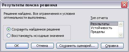 Провести вычисления, для чего в диалоговом окне Поиск решения, нажать на кнопку