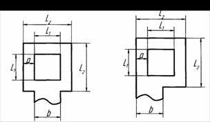 Значения коэффициентов k1 и k2 для расчета диффузионных резисторов при различных конфигурациях контактных площадок