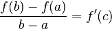 Доказательство Если функция на отрезке постоянна, то утверждение очевидно, поскольку производная функции равна нулю в любой точке интервала. Если же нет, поскольку значения функции в граничных точках сегмента равны, то согласно теореме Вейерштрасса, она принимает своё наибольшее или наименьшее значение в некоторой точке интервала, то есть имеет в этой точке локальный экстремум, и по лемме Ферма, в этой точке производная равна 0. Теорема Лагранжа: Формула конечных приращений или теорема Лагра́нжа о среднем значении утверждает, что если функция
