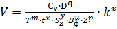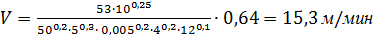 Кv = Kmv Kпv Kиv (19) Kmv – коэффициент, учитывающий качество обрабатываемого материала, Kпv- коэффициент, отражающий состояние поверхности заготовки, Kиv- коэффициент, учитывающий качество материала инструмента. Kmv = 0,8 [2, стр. 262, табл. 3]; Kпv = 0,8 [2, стр. 263, табл. 5]; Kиv = 1 [2, стр. 263, табл. 6]; Кv = 0,8 × 0,8 × 1 = 0,64 По таблице [2, стр.269, табл.17] находим значения коэффициента Сu и показателей степеней m, x, y, q, p, u. С u =53 - по [2, стр.269, табл.17]; x = 0,3 - по [2, стр.269, табл.17]; y = 0,2 - по [2, стр.269, табл.17]; m = 0,2 - по [2, стр.269, табл.17]; u = 0,2 - по [2, стр.269, табл.17]; p = 0,1 - по [2, стр.269, табл.17]; q = 0,25 - по [2, стр.269, табл.17]. -при первом проходе: