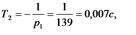 При этом выполняется соотношение: Тм>4Тэ, 0,7>0,0073·4=0,03 В этом случае знаменатель передаточной функции может быть представлен в виде: (Т1р+1)(Т2р+1) Для определения постоянных времени Т1 и Т2 решаем уравнение: ТмТэр2+Тмр+1=0 (106)