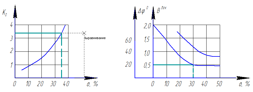 Где величина коэффициента Ко выбирается по кривой следующего рисунка в зависимости от допустимого перерегулирования. График для определения параметров желаемой ЛАЧХ показан на рис. 5. Длиной центрального участка с наклоном - 20 дб ∕дек можно задавать по частотным интервалам. Требуемая величина второго интервала определяется в зависимости от