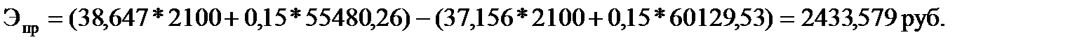 Определяем годовой экономический эффект: Эпр = (Сб + Ен ´ Кб) – (См + Ен ´ Км) (156) Ен – нормативный коэффициент эффективности (0,15)