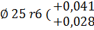 Рисунок 2.1. Эскиз сопряжения Ось колеса 8 установлена в корпусе 79. Соединение неподвижное неразъёмное. Неподвижность обеспечивается натягом. Детали должны хорошо центрироваться. Для аналогичных сопряжений применяются посадки Параметры вала: Верхнее предельное отклонение es=+0,041 мм Нижнее предельное отклонение ei=+0,028 мм Наибольший предельный размер dmax=dn+es=25,041 мм Наименьший предельный размер dmin=dn+ei=25,028 мм