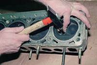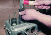 | Сборку головки блока производим в обратной последовательности, устанавливая с помощью оправки новые маслоотражательные колпачки.
