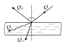 Лучистый поток, падающий на тело Q, частично им поглощается QA, частично отражается QR, частично проходит сквозь тело QD