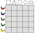 4) Оборудование: Набор карточек (25 штук) с разноцветными плоскостными изображениями геометрических фигур (5 цветов, 5 простых правильных геометрических форм). Таблица с расчерченными клетками, где слева по вертикали нанесены 5 цветных зигзагов, а по горизонтали - 5 соответствующих форм. 5) Инструкция: Для детей со сформированным и автоматизированным прямым числовым рядом до 30 работа проводится в четыре этапа. Для детей, не владеющих в необходимой степени порядковым счетом, - в три этапа Й этап Ребенку подается весь набор карточек, сложенных в случайном порядке, его просят пересчитать их вслух, складывая карточки на стол Инструкция 1 Регистрируются время, затрачиваемое ребенком на пересчет карточек, и имеющиеся ошибки. Полученные результаты заносятся в соответствующий раздел протокола. В случае, когда ребенок не владеет порядковым счетом, этот этап не проводится и на последующих этапах работы пересчет карточек не осуществляется Примечание 1 Примечание 2 2-й этап Инструкция 2А Важно, чтобы ребенок раскладывал все карточки подряд, не выбирая из стопки нужные по цвету. Инструкция 2Б Регистрируются время, затрачиваемое ребенком на пересчет карточек, и особенности раскладки по цвету, наличие групп «дубликатов» и другие допускаемые ребенком ошибки. Полученные результаты заносятся в соответствующий раздел протокола 3-й этап Инструкция 3 4-й этап Инструкция 4А Следует отметить, что часто подобная развернутая ориентировка не требуется. Если ребенок правильно указывает место этой фигуры, инструкция продолжается: «Начни раскладывать подряд фигурки по таблице, одновременно пересчитывай их, как пересчитывал до этого». Для детей среднего дошкольного возраста иногда необходима более развернутая помощь. Тогда ребенку предлагается более образный (метафоричный) вид инструкции Инструкция 4Б Если ребенок правильно указывает место этой фигуры, инструкция продолжается: «Разложи все фигурки по таблице так, чтобы каждая жила в своем домике». Далее регистрируются время, затрачиваемое ребенком на пересчет (если ребенок владеет соответствующим порядковым счетом) и раскладку карточек в кучки по форме, а также допускаемые им ошибки. Полученные результаты заносятся в соответствующий раздел протокола.