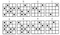 4) Оборудование: Лист с точками предварительно разрезается на 8 малых квадратов, которые затем складываются в стопку таким образом, чтобы вверху оказался квадрат с двумя точками, а внизу — квадрат с девятью точками (все остальные идут сверху вниз по порядку с последовательно увеличивающимся на них числом точек). 8 пустых бланков-квадратов. 5) Инструкция: «Сейчас мы поиграем с тобой в игру на внимание. Я буду тебе одну за другой показывать карточки, на которых нарисованы точки, а потом ты сам будешь рисовать эти точки в пустых клеточках в тех местах, где ты видел эти точки на карточках». Далее ребенку последовательно, на 1-2 сек, показывается каждая из восьми карточек с точками сверху вниз в стопке по очереди и после каждой очередной карточки предлагается воспроизвести увиденные точки в пустой карточке за 15 сек. Это время дается ребенку для того, чтобы он смог вспомнить, где находились увиденные точки, и отметить их в пустой карточке. 6) Обучающая помощь: не требуется 7) Анализ результатов: Объемом внимания ребенка считается максимальное число точек, которое ребенок смог правильно воспроизвести на любой из карточек (выбирается та из карточек, на которой было воспроизведено безошибочно самое большое количество точек). 8) Оценка результатов: Результаты эксперимента оцениваются в баллах следующим образом: 10 баллов — ребенок правильно за отведенное время воспроизвел на карточке 6 и более точек. 8-9 баллов — ребенок безошибочно воспроизвел на карточке от 4 до 5 точек. 6-7 баллов — ребенок правильно восстановил по памяти от 3 до 4 точек. 4-5 баллов — ребенок правильно воспроизвел от 2 до 3 точек. 0-3 балла — ребенок смог правильно воспроизвести на одной карточке не более одной точки. Date: 2015-07-23; view: 4794; Нарушение авторских прав |