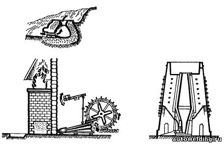 Железо... Недра нашей планеты богаты этим металлом, который по праву называют «фундаментом цивилизации». Словно для того чтобы не расставаться со своими сокровищами, природа, прочно связав железо с другими элементами (главным образом с кислородом), спрятала его в разнообразных рудных минералах. Но уже в глубокой древности — во втором тысячелетии до нашей эры — человек научился извлекать нужный ему металл. В историческом плане производство черных металлов развивалось по следующим этапам: 1. Сыродутный процесс (1500 лет до н. э.). Производительность процесса очень низкая, получали за 1 час всего до 0,5… 0,6 кг железа. В кузнечных горнах железо восстанавливалось из руды углём при продувке воздухом с помощью кузнечных мехов. В результате длительной продувки воздухом из кусочков руды получались практически без примесей кусочки чистого железа, которые сваривались между собой кузнечным способом в полосу, которые далее использовались для производства необходимых человеку изделий. Это технически чистое железо содержало очень мало углерода и мало примесей (чистый древесный уголь и хорошая руда), поэтому оно хорошо ковалось и сваривалось и практически не корродировало. Процесс шел при относительно невысокой температуре (до 1100…1350 oС), металл не плавился, т. е. восстановление металла шло в твердой фазе. В результате получалось ковкое (кричное) железо. Просуществовал этот способ до XIV века, а в несколько усовершенствованном виде до начала XX века, но был постепенно вытеснен кричным переделом. Отсюда следует, что исторически самым первым сварщиком металлов был кузнец, а самый первый способ сварки - это кузнечная сварка. 2. С увеличением размеров сыродутных горнов и интенсификацией процесса возрастало содержание углерода в железе, температура плавления этого сплава (чугуна) оказывалась ниже, чем у более чистого железа и получалась часть металла в виде расплавленного чугуна, который как отход производства вытекал из горна вместе со шлаком. 3. В конце XVIII века в Европе начали использовать минеральное топливо в доменном процессе и в пудлинговом процессе. При пудлинговом процессе каменный уголь сгорает в топке, газ проходит через ванну, расплавляет и очищает металл. В Китае даже раньше, в X-ом веке, выплавляли чугун, а далее получали сталь процессом пудлингования. Пудлингование- это очистка чугуна в пламенной печи. При очистке железные зерна собираются в комья. Пудлиновщик ломом много раз переворачивает массу и делит ее на 3…5 частей – криц. В кузнице или прокатной машине свариваются зерна и получают полосы и другие заготовки. Используются уже паровые машины вместо водяного колеса. Производительность возрастает до 140 кг сварочного железа в час. 4. В конце XIX века — почти одновременно внедряются три новых процесса получения стали: бессемеровский, мартеновский и томасовский. Производительность плавки стали возрастает резко (до 6 тн/час). 5. В середине XX века: внедряются кислородное дутье, автоматизация процесса и непрерывная разливка стали. 6. При сыродутном, кричном и пудлинговом процессах железо не плавилось (технический уровень того времени не давал возможность обеспечить температуру его плавления). Продувка кислородом расплавленного металла в бессемеровском конверторе из-за резкого увеличения поверхности соприкосновения металла с окислител