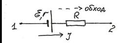 Сформулируем теперь закон Ома для полной неразветвленной цепи, которая схематически изображается так: Обойдем цепь по току. Начальная и конечная точки совпадают, поэтому