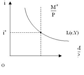 Структура грошового ринку: · за видами інструментів, що застосовуються для переміщення грошей від продавця до покупця (ринок позичкових зобов'язань, ринок цінних паперів; · за інструментальними ознаками грошових потоків (фондовий ринок, ринок банківських кредитів, ринок послуг небанківських фінансово-кредитних інститутів; · за економічним призначенням грошових коштів (ринок грошей і ринок капіталів; · за функціональними ознаками (міжбанківський ринок і відкритий ринок). Попит і пропозицію грошей пов'язує модель грошового ринку. Згідно з короткостроковою моделлю грошового ринку, пропозиція грошей, доход і рівень цін є екзогенними змінними. Пропозиція грошей контролюється центральним банком і фіксована на рівні Мs . У короткостроковому періоді рівень цін не змінюється, тому номінальні та реальні змінні моделі збігаються: М=(М/Р); r=і. Таким чином, реальна пропозиція грошей фіксована на рівні (М/Р)s і на графіку показана вертикальною лінією. Альтернативну вартість грошей вимірює ставка процента по такому фінансовому активу, як облігації. Попит на гроші L(r) є спадною функцією процентної ставки (r ) для даного рівня доходу (Y).