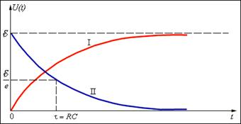1. Рассмотрим процесс зарядки конденсатора. При замыкании цепи, состоящей из последовательно соединенных источника тока