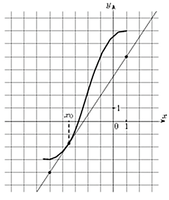 На рисунке изображены график функции y = f(x) и касательная к нему в точке с абсциссой x0. Найдите значение производной функции y = f(x) в точке x0.