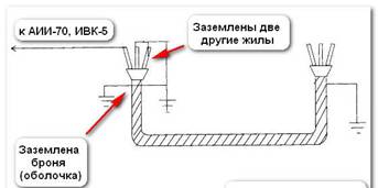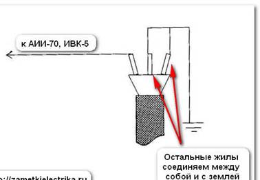 Силовой кабель полностью отключаем от электрооборудования или ошиновки, и разводим жилы на расстояние более 15 (см) друг от друга. После этого подключают либо аппарат АИИ-70, либо ИВК-5. Последний аппарат применяют чаще всего на выездах.
