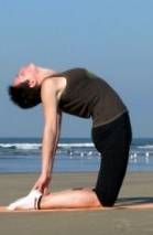 7. Становимся на колени, руки расслаблены. На вдохе плавно поднимаем руки перед собой, затем вверх и круговым движением, выгибая спину, касаемся пяток руками. На выдохе, руки поднимаются через верх, возвращаемся в первоначальное положение. (Повторяем ещё 2 раза).
