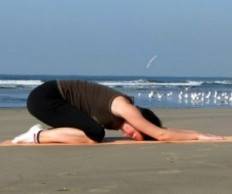 8. Садимся на колени, голова упирается в пол. Расслабленные руки лежат впереди. (Счёт до5)