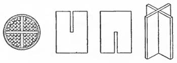 Рис. 279. Дробовой снаряд, разделенный картонной крестовиной. Картонная крестовина и ее детали Снаряжение патронов производится следующим образом:
