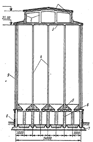 Часть колонны, расположенную выше консолей, называют над-крановой, ниже — подкрановой. Надкрановую часть колонны, поддерживающую элементы покрытия, называют надколонником. В двух-ветвевых колоннах надколонник выполняют из одной ветви, вследствие чего для опчрания подкрановых балок создаются уступы. Верхний торец колонны имеет стальной закладной лист с анкерными болтами для крепления несущих элементов покрытия. Стальные закладные детали предусматривают также в местах установки подкрановых балок и связей и, кроме того, в боковых плоскостях крайних колонн (для крепления стен). Для выверки положения колонн при их монтаже предусмотрены риски в виде вертикальных канавок треугольного профиля. Их наносят на четырех гранях колонн (вверху и внизу), а также на боковых гранях консолей колонн. Колонны изготовляют из бетона марок 200, 300 и 400, рабочую арматуру — из стали класса А-Ш. Колонны фахверка (вспомогательного каркаса) устраивают торцовых фахверках и фахверках продольных стен одноэтажных промышленных зданий при длине стеновых панелей 6 и 12 м. Колонны рассчитывают на нагрузку от ветра и массыпанельныхстен. устанавливают колонны на самостоятельные фундаменты. Наружная грань колонн рассполагаетсяв плоскости внутренней поверхности стен. Колонны изготовляют из бетона марок 200—-400, рабочая арматура — из стали класса А-Ш.