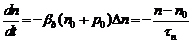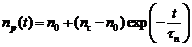 Суммарная скорость рекомбинации В реальном полупроводнике, как правило, доминирует одно из слагаемых. В кремнии рекомбинация идёт по второму механизму, тогда как в арсениде галлия – по первому. Причина кроется в особенностях электронной структуры полупроводников, по которым кремний и арсенид галлия относятся к разным типам полупроводников. Эти вопросы изучаются в курсе «Физика твёрдого тела». В результате одновременного протекания процессов генерации и рекомбинации в полупроводнике устанавливаются стационарные, то есть не зависящие от времени при неизменных внешних условиях, концентрации электронов Пусть рекомбинация идёт только через ловушки. Её скорость пропорциональна частоте встреч неосновных носителей (будем считать, что ими являются электроны) с ловушками, которая, в свою очередь, пропорциональна произведению концентраций электронов где или Из всех источников генерации только один – тепловая генерация - является постоянно действующим. В то время как другие источники легко выключить, тепловая генерация прекращается только при очень низких температурах, далеко за пределами практически важной области рабочих температур. При умеренных температурах под действием теплового движения в полупроводнике устанавливаются стационарные концентрации носителей, являющиеся, с точки зрения термодинамики, равновесными. Все остальные источники генерации создают неравновесные носители. Равновесные концентрации носителей обозначаются Предположим, что нетепловые источники действовали до момента времени В (7.1.7) введено обозначение Решение уравнения (7.1.7) тривиально, Величина За Аналогично можно рассмотреть и кинетику межзонной рекомбинации. Пусть начальное состояние создаётся так же, как и в предыдущем случае. Тогда имеем уравнение В течение некоторого времени концентрации избыточных носителей намного больше равновесных концентраций, Решение уравнения (7.11) имеет вид то есть при межзонной рекомбинации концентрации неравновесных носителей убывают на первом этапе по гиперболическому закону. Когда они уменьшатся настолько, что где а При рекомбинации электрон переходит в валентную зону, следовательно, его энергия скачком меняется на