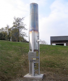 Факел Факельная установка предназначена для временного или периодического полного сжигания биогаза, вырабатываемого биогазовыми установками или полигонами ТБО при отсутствии возможности его полезного использования в качестве энергоносителя. Сжигающая система состоит из горелки и дополнительных узлов. Горелка сконструирована по принципу инжекционного сжигания и состоит из сопла, инжектора с системой контроля подачи воздуха, трубы защиты пламени, штуцера и системы управления горелкой. Система сжигания биогаза сделана из нержавеющей стали. Несущая конструкция держит горелку и вертикально установленный штуцер. Система управления горелки установлена в шкафу, который монтируется на несущей конструкции системы сжигания, и содержит все элементы для контроля и управления зажиганием и пламенем.