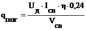 здесь: I св = 360(А) - сила сварочного тока; d пр = 4(мм) - диаметр проволоки; U д = 40(В) - напряжение на дуге; k' = 0,8 - коэффициент:
