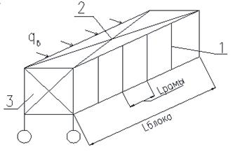 Учет пространственной работы каркаса Состав пространственного каркаса: 1. Плоские поперечной рамы; 2. Горизонтальный продольный диск; 3. Рамы торцов.