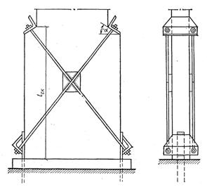 Продольную устойчивость здания с плоскими стойками создают постановкой связей по продольным стенам и между внутренними стойками, если таковые имеются, в продольном направлении. Для неизменяемости каркасных торцовых стен в их крайних пролетах также ставят аналогичные связи. Третий способ. Поперечную устойчивость здания обеспечивают, применяя простейшие комбинированные и подкосные системы, рамные системы или арочные конструкции, передающие распор непосредственно на фундаменты. Продольная устойчивость здания может быть создана постановкой связей по продольным линиям стоек (рис. 4).