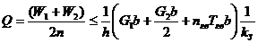 где n - число щитов в поперечной стене; G1 - постоянная вертикальная нагрузка от веса перекрытия и кровли, передающаяся через верхнюю обвязку на один щит; G2 - вес одного щита; b - ширина щита; h - высота стены; Тгв - расчетное усилие, воспринимаемое одним гвоздем; nгв - количество гвоздей, прикрепляющих нащельник к одному щиту; W1 - ветровая нагрузка с наветренной стороны на 1 м длины верхней обвязки продольной стены; W2 - то же, с заветренной стороны; l - расстояние между поперечными стенами; kЗ - коэффициент запаса на опрокидывание, принимаемый 1,4.