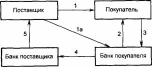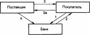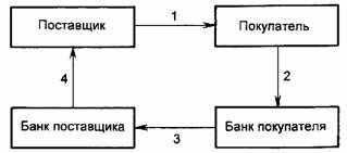 1 – поставка товара (оказание услуг); 2 – передача платежного поручения в банк и списание средств со счета покупателя; 3 – перевод средств в банк поставщика и зачисление средств на счет получателя; 4 – сообщение поставщику о зачислении средств на его банковский счет. В целях гарантии платежа поставщик может внести в условия сделки акцепт платежного поручения. Поручение акцептуется банком путем депонирования (бронирования) суммы поручения на отдельном балансовом счете. На акцептованном поручении делается соответствующая отметка, подтверждающая депонирование средств для оплаты. Акцептованные платежные поручения принимаются к исполнению только в полной сумме. Сфера расчетов платежными поручениями, акцептованными банком, в настоящее время ограничена оплатой почтовых, телефонных и телеграфных услуг, разовых операций по перевозке грузов и пассажиров. К недостаткам данной разновидности расчетов платежными поручениями относят значительное усложнение и удлинение документооборота и отвлечение средств из хозяйственного оборота клиента. Аккредитивная форма расчетов применяется достаточно редко. Ее сущность состоит в том, что плательщик поручает обслуживающему его банку произвести за счет средств, предварительно депонированных на счете, либо под гарантию банка, оплату товарно-материальных ценностей по месту нахождения получателя средств на условиях, предусмотренных плательщиком в заявлении на открытие аккредитива. Аккредитив представляет собой условное денежное обязательство банка, выдаваемое им по поручению клиента в пользу его контрагента по договору, по которому банк-эмитент, может произвести поставщику платеж или предоставить полномочия другому банку производить такие платежи при условии предоставления им документов, предусмотренных в аккредитиве. Если банк, выставивший аккредитив (банк-эмитент), по поручению плательщика (покупателя) переводит средства в другой банк – банк поставщика, то для осуществления платежа при выполнении всех условий, предусмотренных в аккредитиве, в банке поставщика открывается отдельный балансовый счет «Аккредитивы».