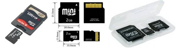 Разновидность SDHC (SD High Capacity) Является параметром, который определяет повышенную максимальную вместимость карты. Она составляет 32 ГБ, в отличие от 4 ГБ в обычных SD. Можно с уверенностью говорить о том, что все современные карты, объем которых превышает 4 ГБ являются SDHC. Формат SDXC Является следующим "шагом" в развитии SD-картSD. Карты этого формата вмещают до 2 ТБ информации. Все случаи предусматривают обратную совместимость форматов. Это значит, что устройства, которые могут взаимодействовать с SDHC, совместимы с более старым форматом SD. Карты MiniSD и MicroSD Уменьшенные виды SD-карт, размеры которых составляют 21,5x20x1,4 мм и 11x15x1 мм соответственно. Карты MiniSD и MicroSD можно вставлять в любой слот для обычной SD-карты с помощью адаптеров. Они просто являются уменьшенным вариантом SD.